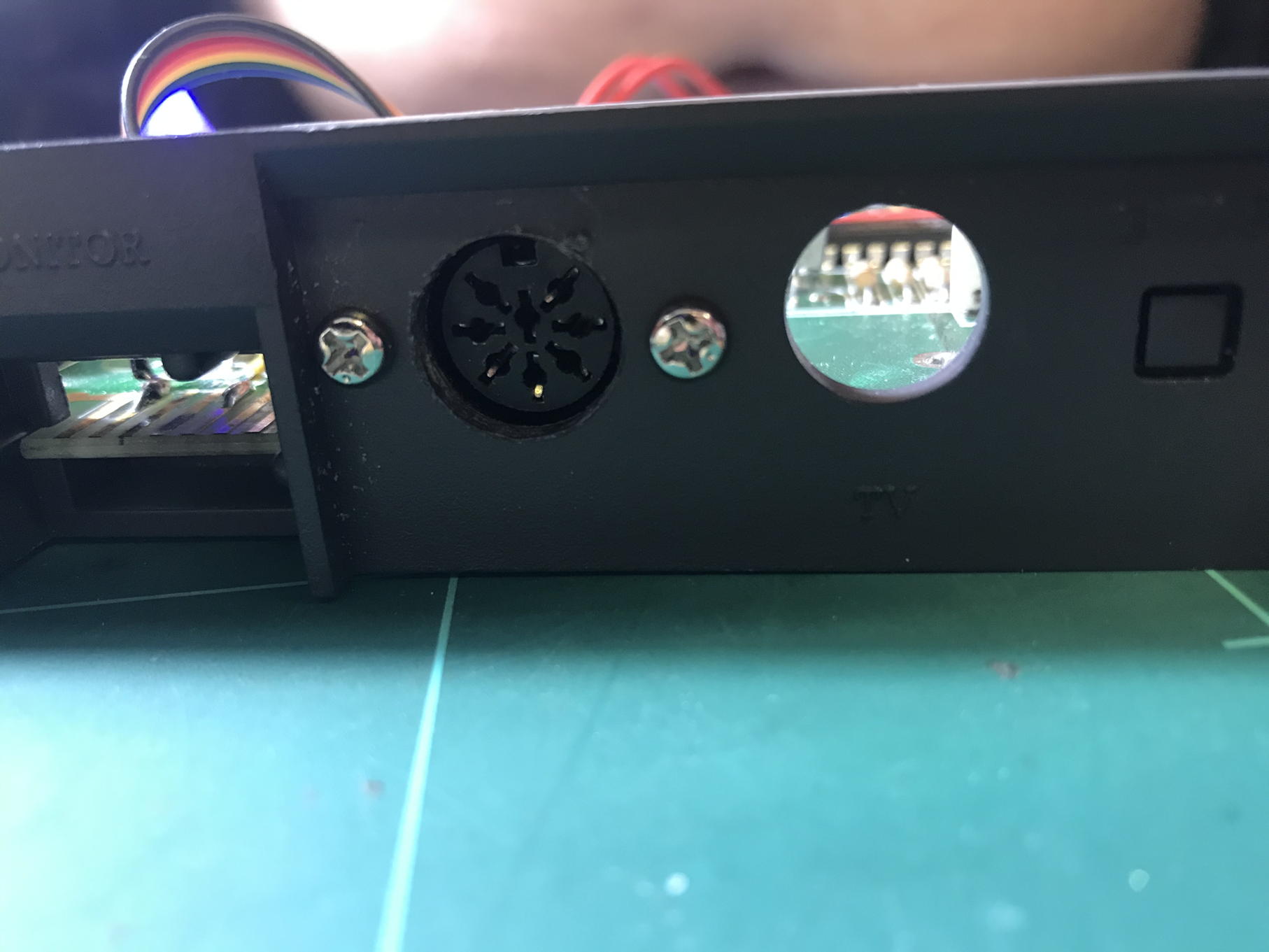 Had to file the motherboard around the DIN socket so it would fit, but I'm happy that I can now actually use it - no software or storage though. If I was keen I could wire in an RCA socket and restore the composite video out.