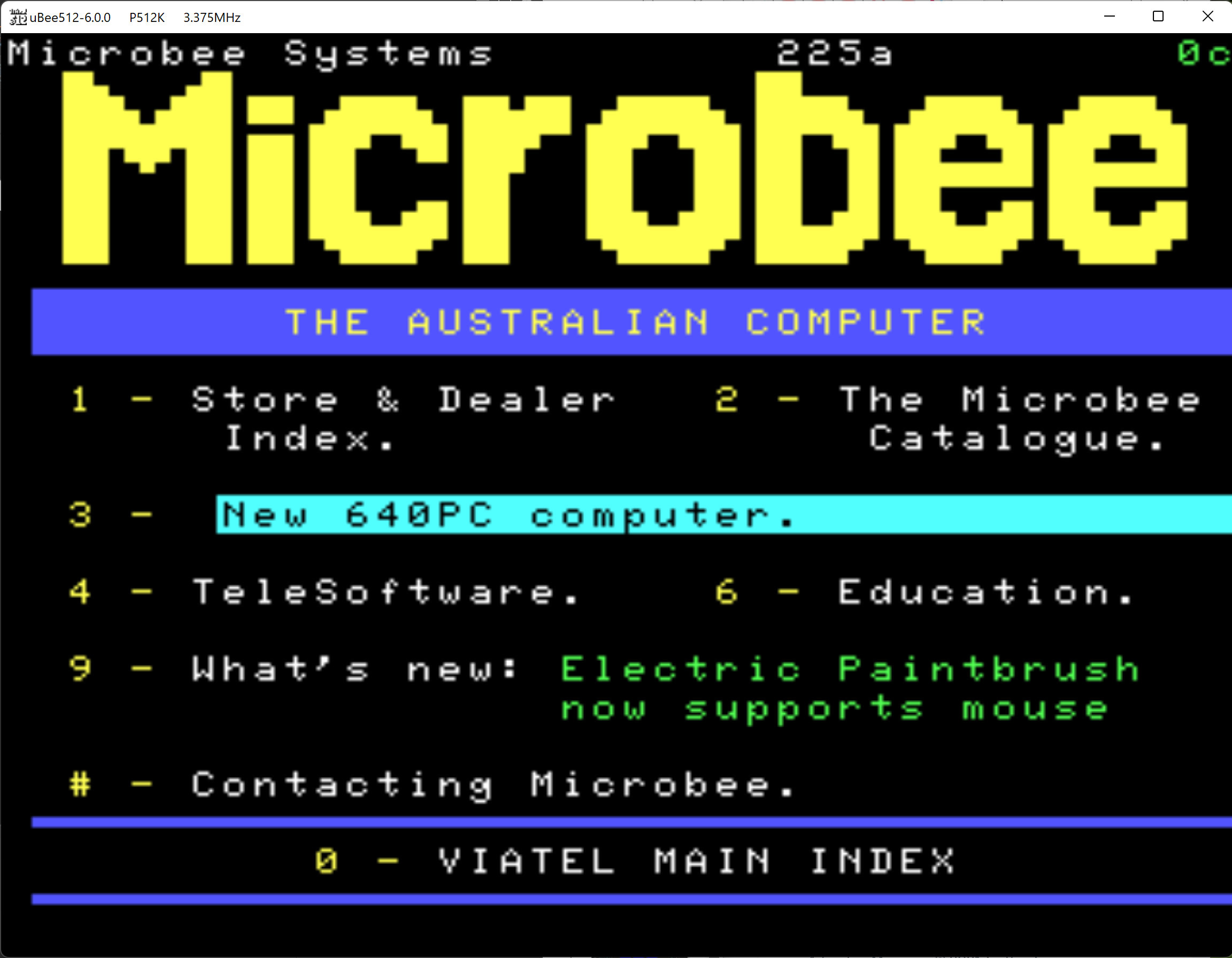 Screen dumps of most of the pages have also been put up on archive.org. There are 98 of them with the Microbee Main page at #47. So check them out at https://archive.org/details/videotex_via...es_1985-86