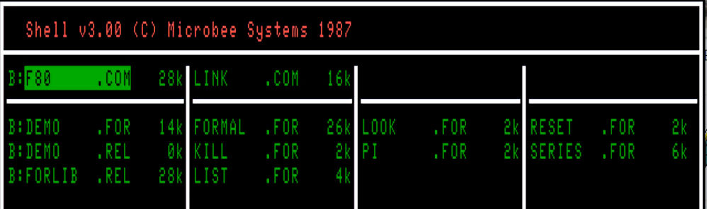 This is Microsoft Fortran-80 version 3.43 and copyrighted 1978-1981. There are many copies of this across the internet but none are on Microbee disks ready to use, until now. The disk contains a number of *.FOR files, including a DEMO.FOR file. The disk directory is :-