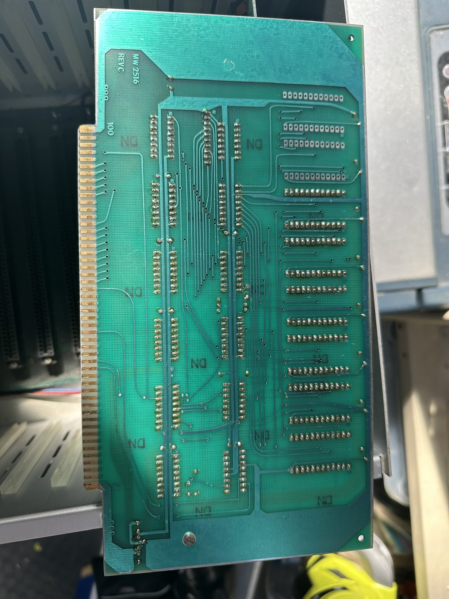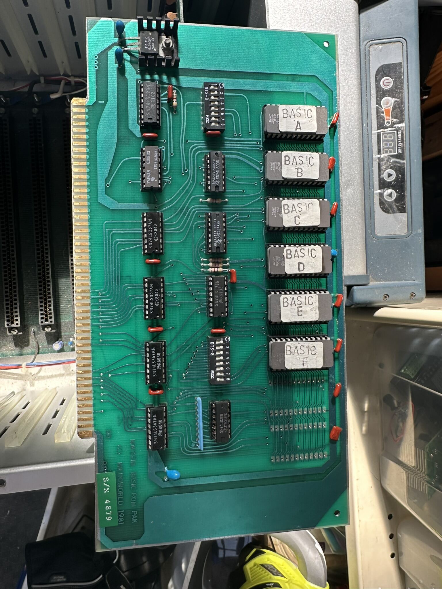 I know it has a Microworld Basic card in it with 6 roms on it. There is an "Economy 16K memory card", a DGZ640 card and several others.