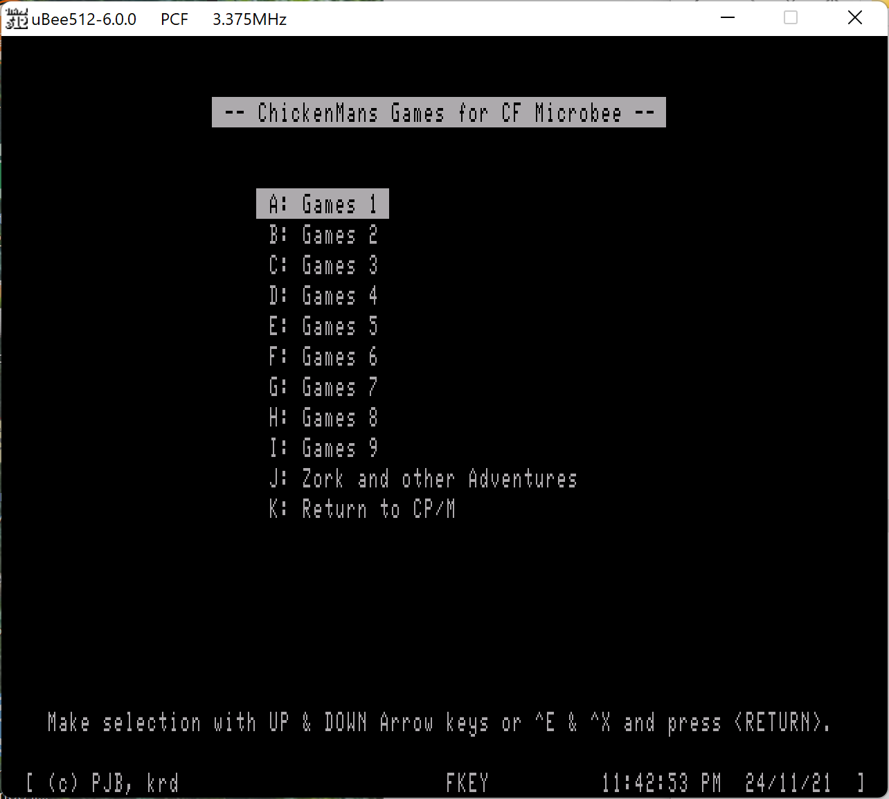 An update to my 512kb Microbee booting off a Compact Flash - ChickenMan - 25-11-2021 I've been recently playing with my 512k CF Microbee (a Premium mainboard with a Suzy Jacksons coreboard updated to v0.5) and wanting to update one of my CF Sandisk 32mb cards that has 4 x 5mb partitions filled with all or most of our games on it and all menu driven for easy access. A friend also has the same but with a Suzy Jackson v0.4 coreboard and hoping the same CF will work on his also. The latest CF files, version 0.59, when assembled produces an image that I can then write to the CF using Win32 DiskImager. It boots up to this : The distortion in the top few lines are remnants left over from the previous screen before the Shell loads. The SHELL is version 2.34, I originally changed that to SHELL v3.00 and that problem disappears. However, v3.00 is larger then v2.34 and there is not enough room for the CCP.SYS to load (as displayed on initial boot up) so you are unable to get to a command line prompt A0>. Change the SHELL to v2.36 and both problems are fixed, SHELL distortion gone and I can still get to a command prompt. Now boots to The directory lister L.COM is an old version 2.2. This version runs extremely slow so have updated it to ver 2.5, 2.8 or even 4.0 and they all run at expected high speed. I then used PART to create the B:, C: and D: primary partitions of 5mb each. I also added BASIC ver 3.00e to A:. A floppy drive attached then appears as drive E:. I decided to leave A: alone and fill B: with the floppies ARCADE_1, 2 & 3 and some others. A major problem found that trying to use ubee512 emulators to transfer files to the CF image, I get "Disk Full" error or "Cant close xxxx" when trying to copy files across. I had another CF image file that I could copy files across to using ubee512 but then it would not boot in a real Microbee. So I ended up copying the floppy DSK images I needed to a USB key and put in my spare Gotek. I plugged it in Microbee and was then able to copy the files from E: Arcade 1, 2 & 3 to B0: drive but had renamed their Basic Menu's to M1.MWB, M2.MWB and M3.MWB prior to copying. I then modified a copy of Easy Menu to run them. I also copied a few other game disks to A1:, A2:, etc, so the MENU boots to I soon found that the Easy Menu can't handle User Areas, like A1:, but USR.COM can. So the Easy menu now runs USR 1 which runs whats in A1:. Second problem found was that you cant run Easy Menu out of Easy Menu on another disk, so a Turbo Pascal menu was compiled for the disks where that was a problem. Also, the old problem that you cant run a second program from Easy Menu after running the first one without re-booting the Microbee is still there. Has always been an issue but the CF boots pretty quick so not a real problem. Next was to copy the 9 Games disks, being Games 1, Games 2, to Games 9 to C: drive as well as Adventures 2 disk which has the Zork Adventures on it, as asked for from my friend. Its Menu boots to The last thing to do was to copy the files off another 8 games disks (because Easy Menu only has 8 positions) to disk D: using all the issues found above. So D: Menu boots to So in all, a few issues resolved, new Menus etc created, but now have all the games in an easy to run place. Could use a SD card for the Premium Plus+ but limited by the number you can see in the Menu. I could have also just put all the images on a Gotek but when you have to hunt for the right one which is time consuming when you have 30+ images. To run the copy protected Honeysoft disk, they need to booted from a Floppy either a real floppy or Gotek, so holding down the F key while you Reset the Microbee will make it boot from the Floppy or Gotek attached. My friend sent me 5 x 32mb Sandisk CF cards and I wrote the finished image to all 5. He also sent me his Microbee and only 3 of the CF cards would boot in his Microbee but the other 2 would boot in mine. So I swapped him 2 Sandisk CF cards of mine that also worked in his Microbee. So everyone now happy ![]() Next project is to make an Educational CF card similar to the Games card or maybe 2 to get them all on. Then there are all the Adventure Games that will definitely need 2 CF cards to fit them all on. All waiting for a rainy day ![]() If anyone wants any more detailed information on any of the about, just ask. RE: An update to my 512kb Microbee booting off a Compact Flash - CheshireNoir - 26-11-2021 Nice work! RE: An update to my 512kb Microbee booting off a Compact Flash - ChickenMan - 27-12-2021 No problems Suzy, will email you the Games CF image. This image was generated on a Sandisk 32mb CF but also works on a CISCO 32mb CF as well as it has the same C/H/S layout. These are also available at a good price off an Aussie eBay seller but even cheaper from China if your prepared to wait. RE: An update to my 512kb Microbee booting off a Compact Flash - Ernest - 27-12-2021 Easily done, only needs a timing problem or lockup during writing an bingo it gets corrupted and wont boot no more. I do regular image backup tapes keep from getting caught out. Great job to see you still about in the Microbee circles Susy. Ernest RE: An update to my 512kb Microbee booting off a Compact Flash - ChickenMan - 06-01-2022 Well I had some time to make an Educational CF for my Microbee. I used the same files and processes as above so was relatively easy to make it up. Really need to make a second one as there are still lots of files to add to another CF. Again, I just setup drive B:, C: and D: and using a modified Easy Menu, so for B: drive I ended up with and for C: drive with and for D: drive with The Goddison, J&H Beesware and Nectar disks load up their own Basic menu with a great range of Educational programs on each. Tunning the "Australia 2020" program certainly got the prices of houses wrong for 2020, like MODERN HOUSE WITH A LITTLE LAND, This house is comfortable and modern inside. Outside you have a BBQ, Vegie patch and some flowers. ($55,000), wow