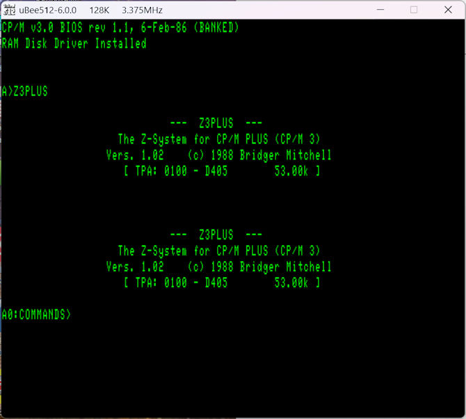 Thanks to snake & Graham72 for making aware of the presence of Z3Plus (Z-System for CP/M Plus) and Graham72's help in configuring it to run on the Microbee.